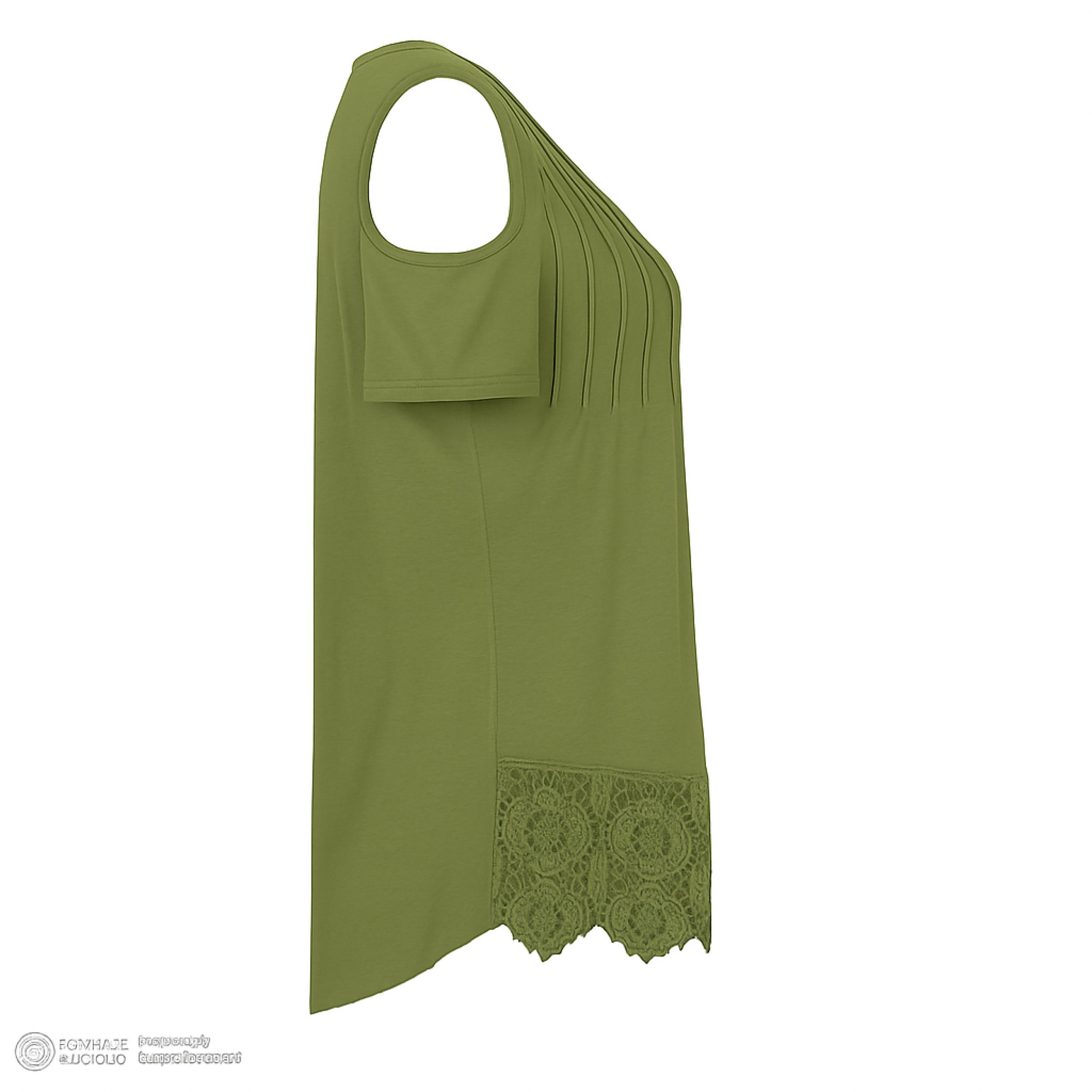 بلوز آستین کوتاه یقه هفت زنانه مدل نخی لبه گیپور رنگ سبز سدری