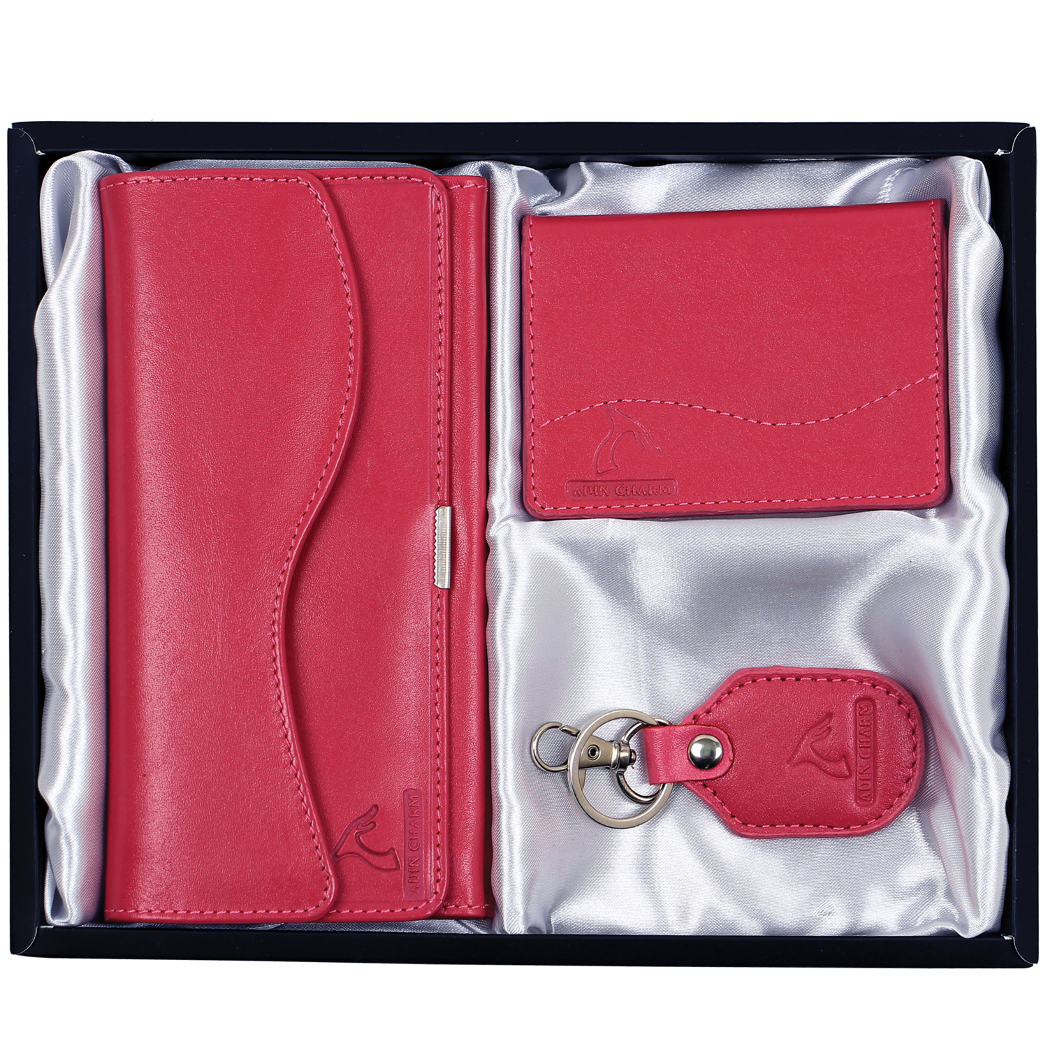 - جزئیاتابعاد جعبه ست : 25 x22x 6 سانتی متر ست هدیه زنانه سه تکه چرم طبیعی گاوی شامل : - کیف پول زنانه مدل DM71 ابعاد 17x 9.5 سانتی متر - کیف آینه مدل DM32.2 ابعاد 10.5x7.5x1 سانتی متر - جاسوئیچی چرم مدل G2 ابعاد 5.5x3 سانتی متر