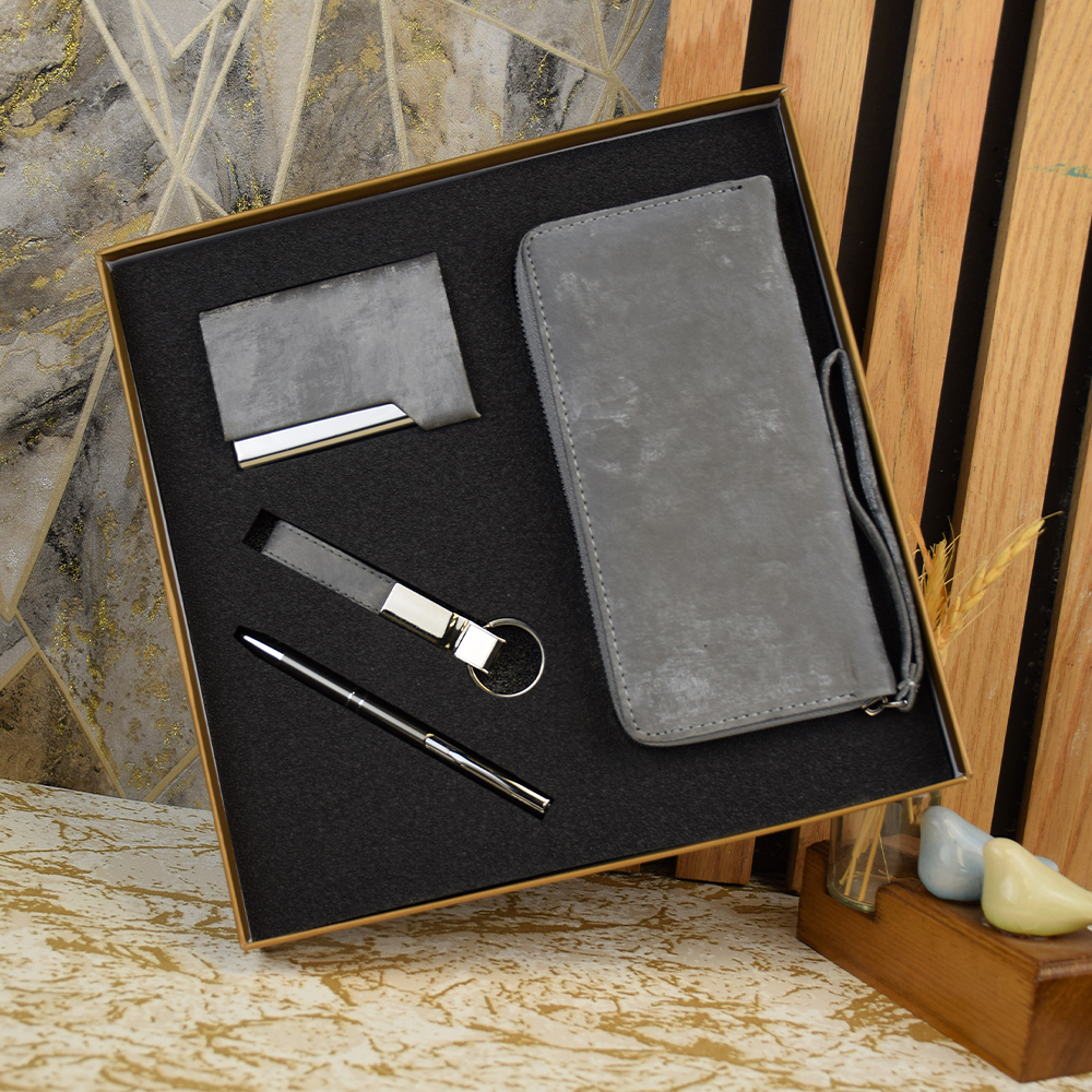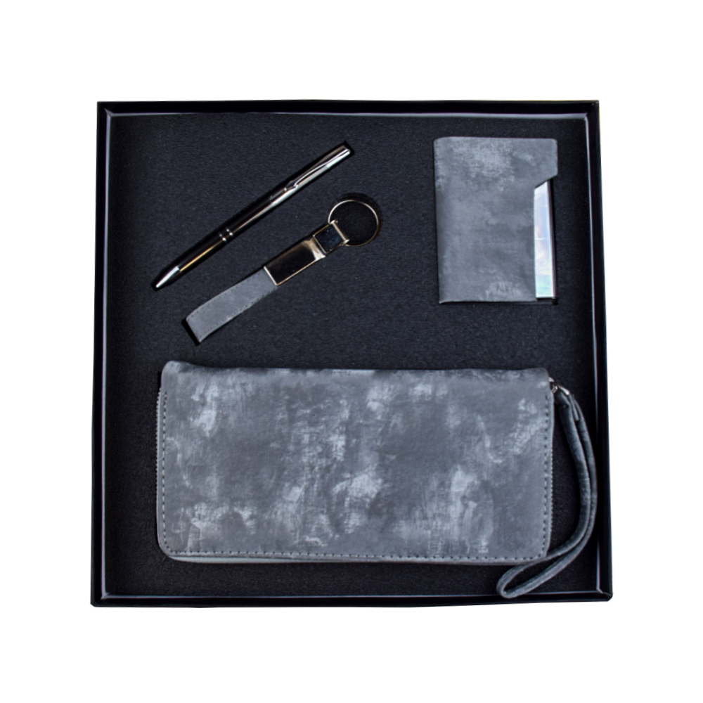 ست هدیه کایرا 4 تیکه 03 یک مجموعه از انواع وسایل تزئیناتی و کاربردی است که مورد استفاده مدیران ارشد ،کارمندان و حتی افراد عادی قرار می گیرد .ست هدیه مدیریتی می تواند یک هدیه خاص و منحصر به فرد باشد. در مناسبت های مختلف مانند روز کارمند، روز مهندس، روز معلم، روز دانش آموز و اعیاد مختلف و غیره میتوانید از این ست زیبا به عنوان هدیه استفاده کنید.این ست هدیه زیبا شامل: یک کیف دستی اسکناس، یک جاکارتی، یک خودکار فلزی و یک جاکلیدی بندی میباشد. ست های هدیه کایرا بهمراه یک جعبه بسته بندی زیبا تقدیمتان میگردد.