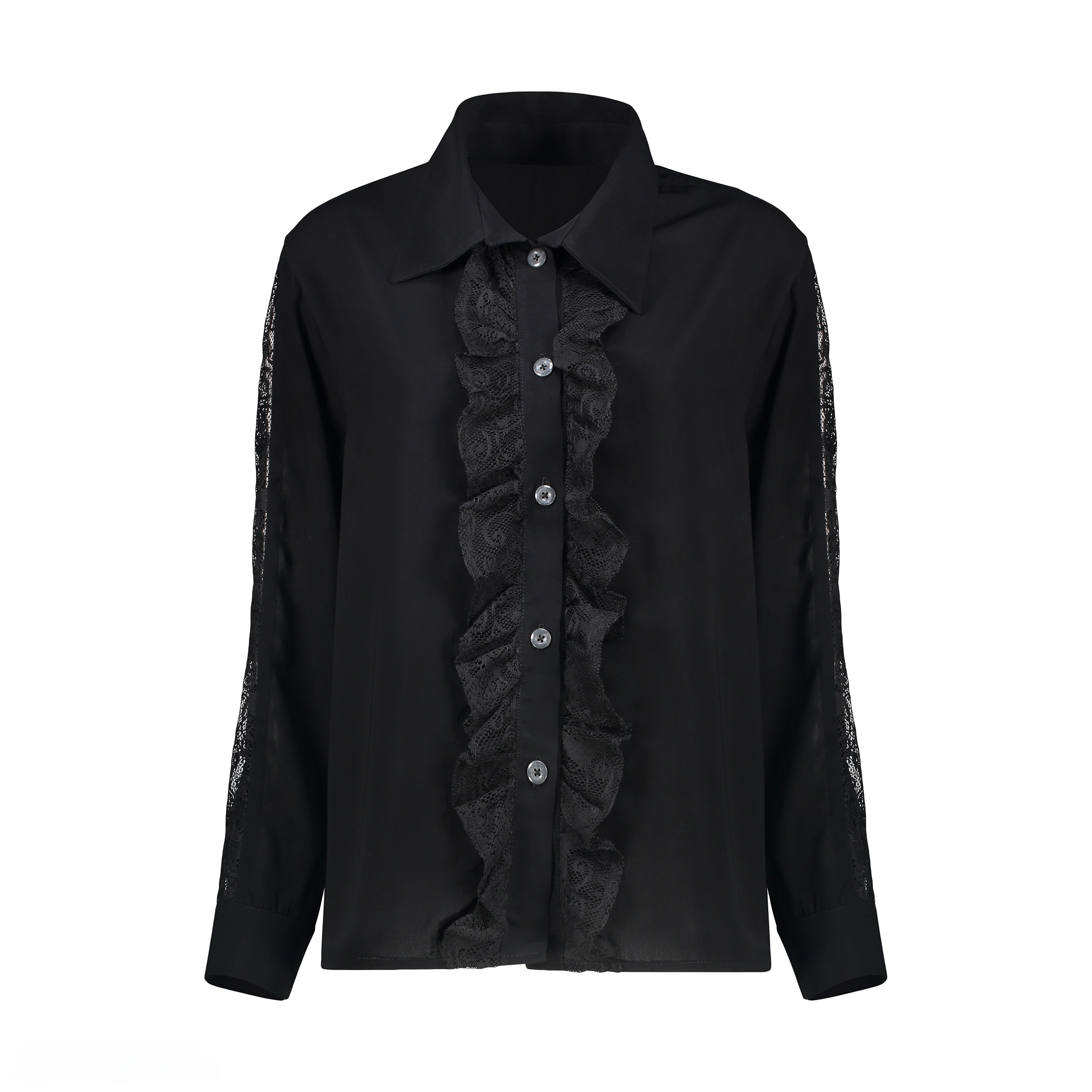 شومیز آستین بلند یقه برگردان زنانه مدل گیپور مجلسی