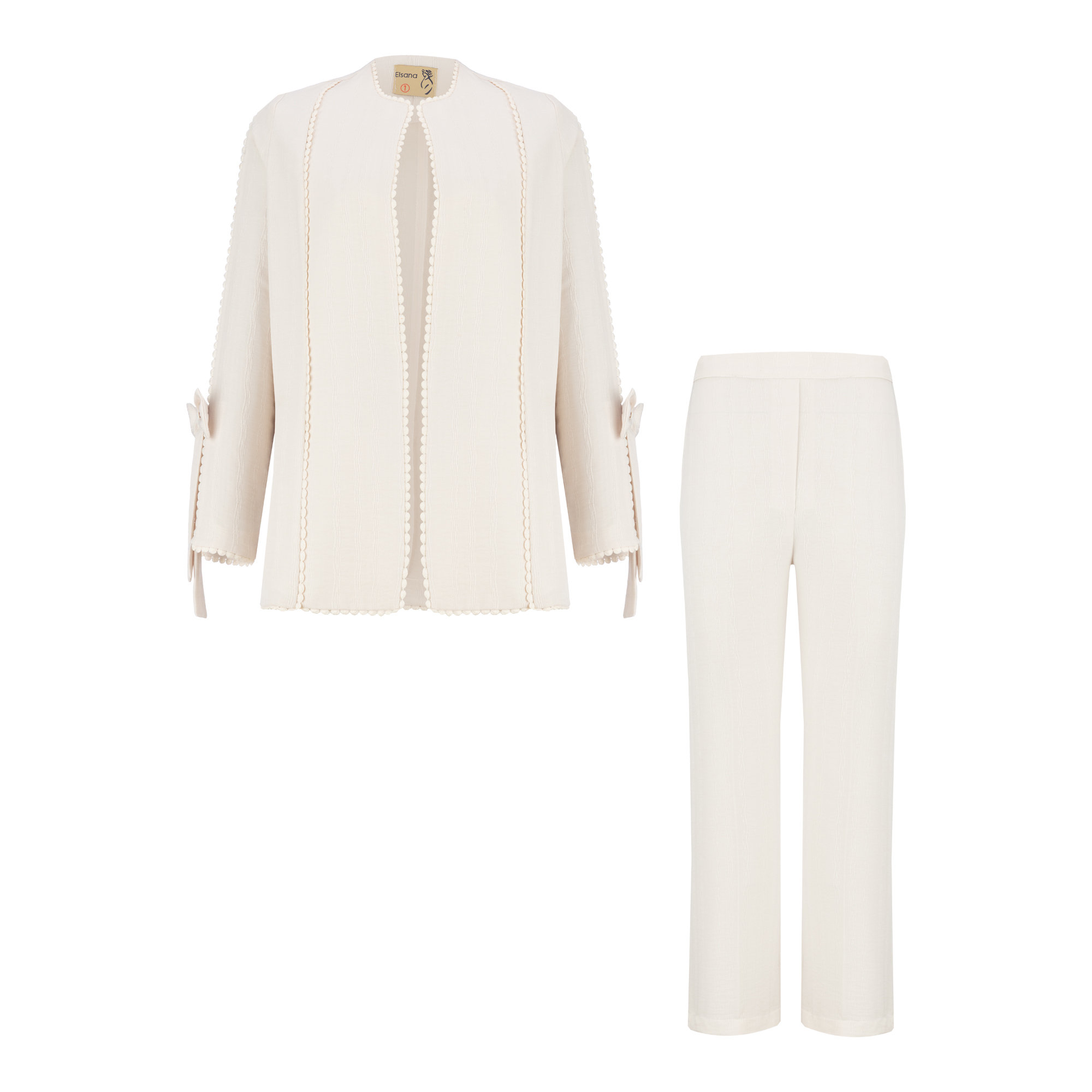مانتو و شلوار زنانه السانا مدل فلامک کد 224209 رنگ شیری