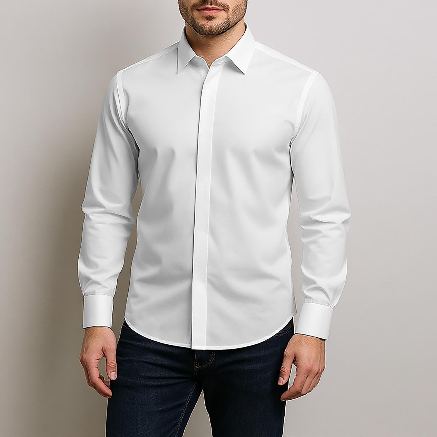 این محصول ک مشاهده میکنید پیراهن سفید ضد چروک مناسب مکان های رسمی مجلسی و روزمره قابل استفاده میباشد کیفیت بالای محصول باعث شده تا در شستشوی متوالی سایز و رنگ آن به صورت ثابت بماند.جنس استفاده شده در تولید این پیراهن از مرغوب ترین پارچه های کرپ دوشین بوده تا احساس راحتی هر چه تمام تر را برای استفاده در طولانی مدت برای مصرف کننده بهمراه داشته باشد. این پیراهن در چندین سایز مختلف دوخت تمام صنعتی اسلیم (فیت) برای همه سنین قابل استفاده میباشد مدل کار بدون جیب و جلو پیراهن به صورت دکمه مخفی و دو دکمه روی آستین کار شده است